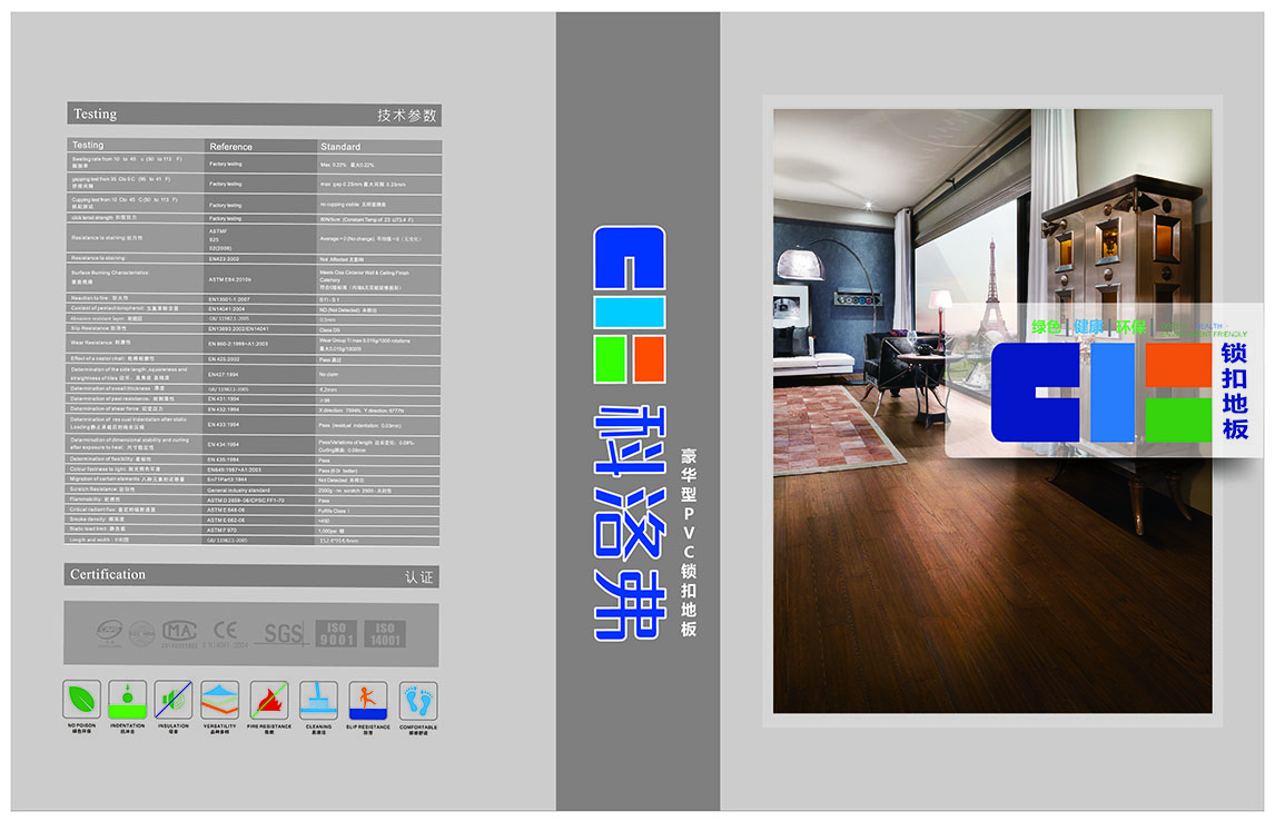 14、PVC地板更防火阻燃:PVC材料本身為防火阻燃材料,通過防火測試,離開火源即自動熄滅,生命安全有保障。