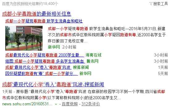 5月31日,新建不久的成都市成華區教科院附屬小學疑因跑道有毒,近2000名學生于昨日搬回了老校區青龍小學,目前新學校內除了保安等人員外,操場、教室未見學生上課。