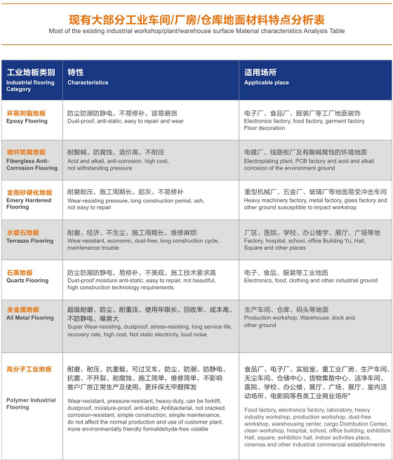 高分子工業地板因采用聚氯乙烯生產,所以材料具備非常優異的韌性,有較強的拉伸力,可以在基層地面產生裂紋的情況下保證地板表面不產生物理裂縫,從而保證工業廠房的潔凈生產要求(無塵)