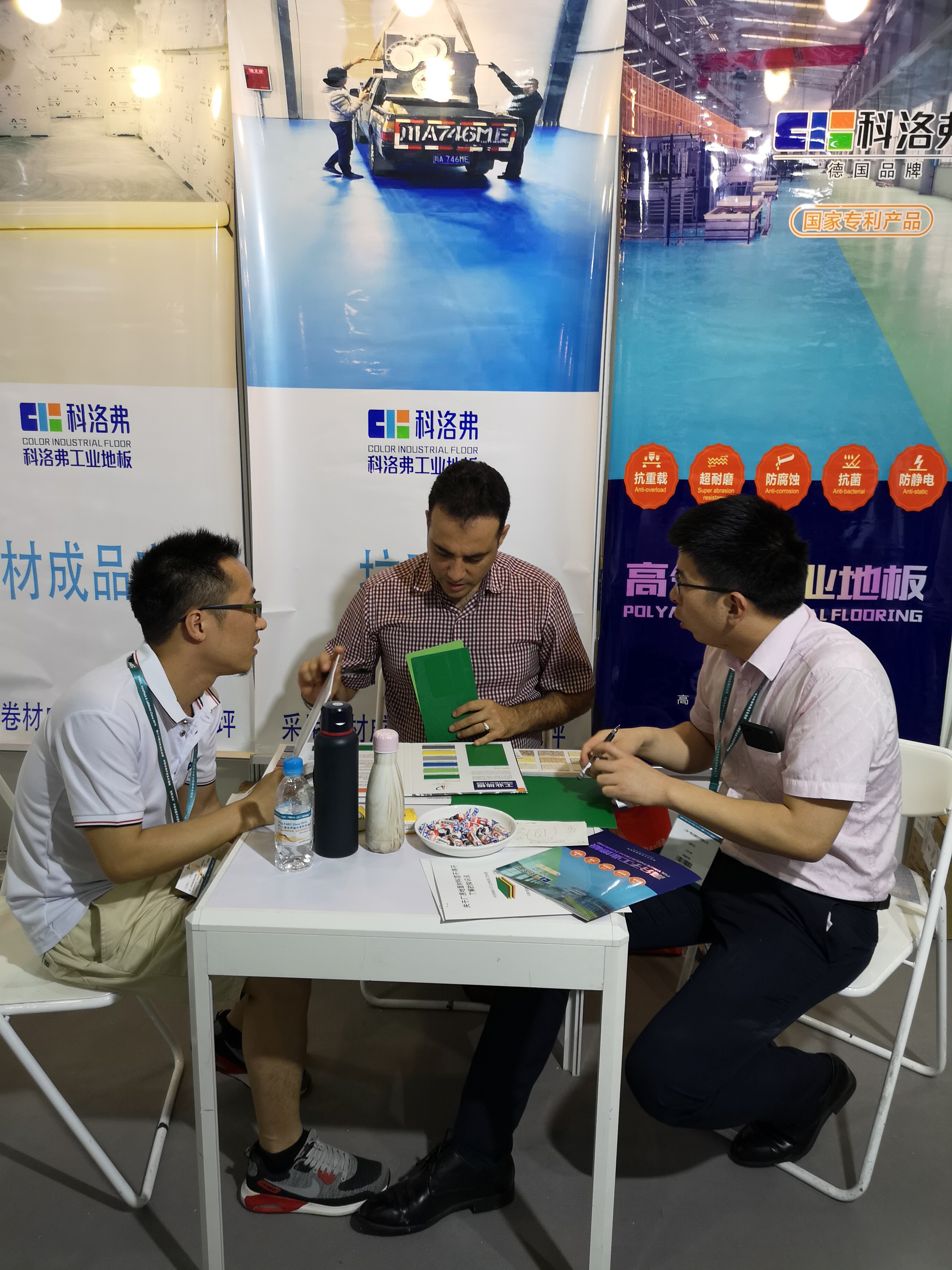 在此次展會(huì)上出現(xiàn)了一種顛覆傳統(tǒng)半成品安裝模式工業(yè)地坪的新型工業(yè)地面材料---高分子工業(yè)地板,此工 業(yè)地板采用成品卷材鋪裝,由湖南峰暢建材有限公司(科洛弗品牌)投入研發(fā)并在取得國家專利后生產(chǎn)面市,目前已在眾多知名上市企業(yè)生產(chǎn)廠房地面投入使用。如:得潤電子、興發(fā)集團(tuán)、艾華集團(tuán)、長(zhǎng)高集團(tuán)、千山藥機(jī)、科力遠(yuǎn)、福耀玻璃、中糧集團(tuán)、蒙牛乳業(yè)等。科洛弗高分子工業(yè)地板之所以受到眾多知名企業(yè)青睞,是因?yàn)楦叻肿庸I(yè)地板具備了傳統(tǒng)工業(yè)地坪材料所無法具備的眾多優(yōu)點(diǎn),主要突出在環(huán)保、耐磨、防腐蝕、防靜電、抗菌、易安裝易維修等方面的優(yōu)勢(shì)。