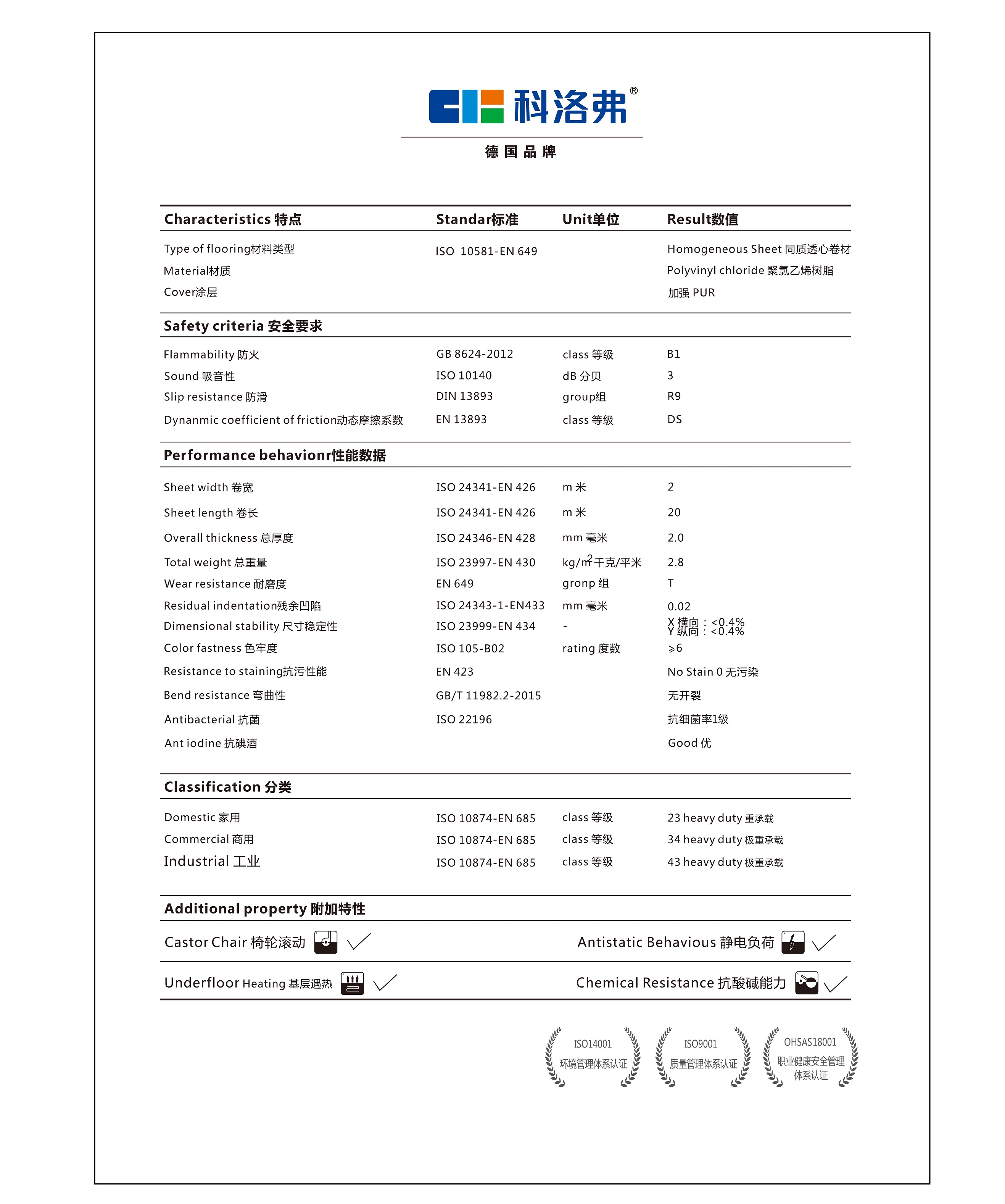科潔系列無方向同質透心PVC地板